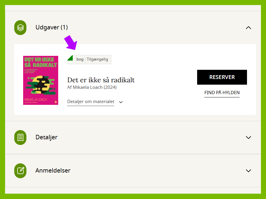 Hvis den er udlånt, kan du reservere den. Så får du direkte besked, når den kan hentes på biblioteket.